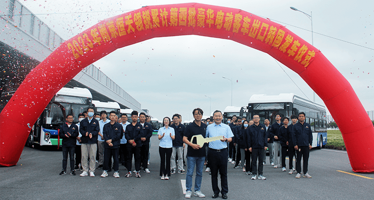 2023年5月 第四批豪華電動(dòng)客車(chē)批量出口韓國(guó)發(fā)車(chē)儀式