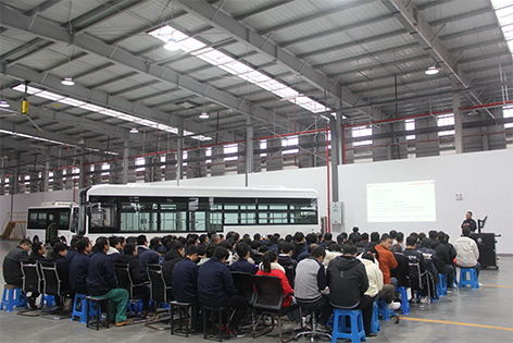 工藝部經(jīng)理嚴偉進行機場擺渡車技術、工藝方面的對標分享