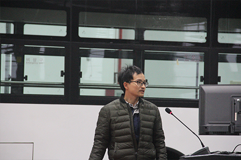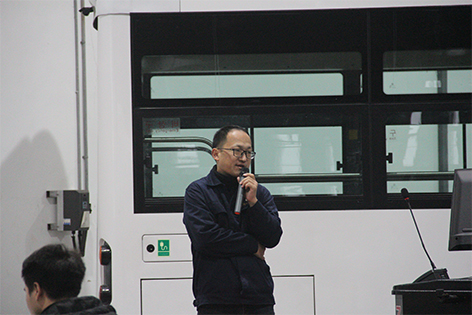 生產(chǎn)總監(jiān)劉練山進行機場擺渡車生產(chǎn)、質(zhì)量方面的對標分享