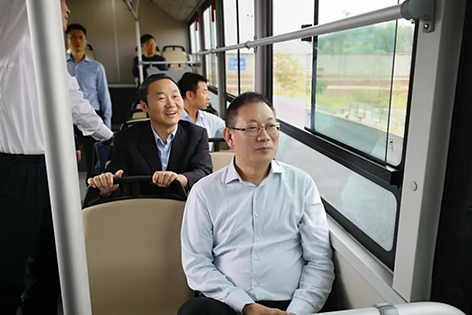 一行人首先來到了科技展廳,董楠向顏甫全一行匯報(bào)了智電客車核心技術(shù)優(yōu)勢(shì),三電系統(tǒng),并詳細(xì)介紹了智電客車在衡陽市場(chǎng)的推廣及應(yīng)用成果。顏甫全對(duì)我司在新能源汽車三電核心技術(shù)上的獨(dú)到優(yōu)勢(shì)表示贊揚(yáng)。